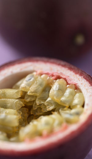 アメリカ大陸の亜熱帯に自生していたもので原産地はブラジル南部と言われています。蔓性の常緑多年草で、和名は果物時計草と呼ばれ、花のトケイソウの仲間で、果物を実らせる事からそう呼ばれています。果実は球状又は卵形で、果皮は濃紫色、黄色、赤色などがあり、つるんとした堅い果皮の内部には、小さくて堅い種は周りを黄色いゼリー状の果肉に覆われています。ゼリー状の果肉はジューシーで強い香気をもち、酸味のある濃厚な風味が特長です。 |
